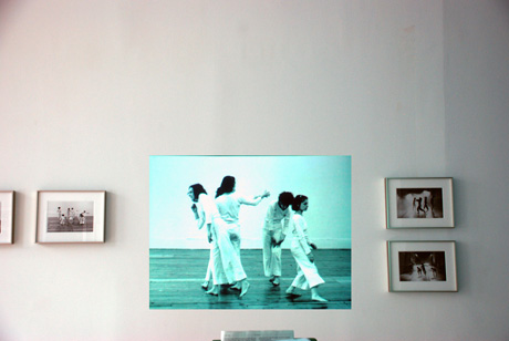 Lucinda Childs: various prints from different dances highlight Lucinda's arm movement plus projection of the film Calico Mingling from 1973 plus a composite image made with two shots from Dance 1979.