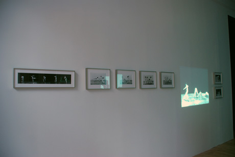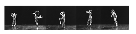 David Gordon: Contact of The Matter, dance from 1972, in which Gordon used the positions from Edward Muybridge's Human Locomotion Series to shape his choreography, composite image of prints from The Matter and one print from his famous Duet with Two Chairs.