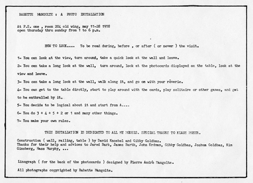 Program Notes about HOW TO LOOK... at the piece with multiple options (original from 1978)